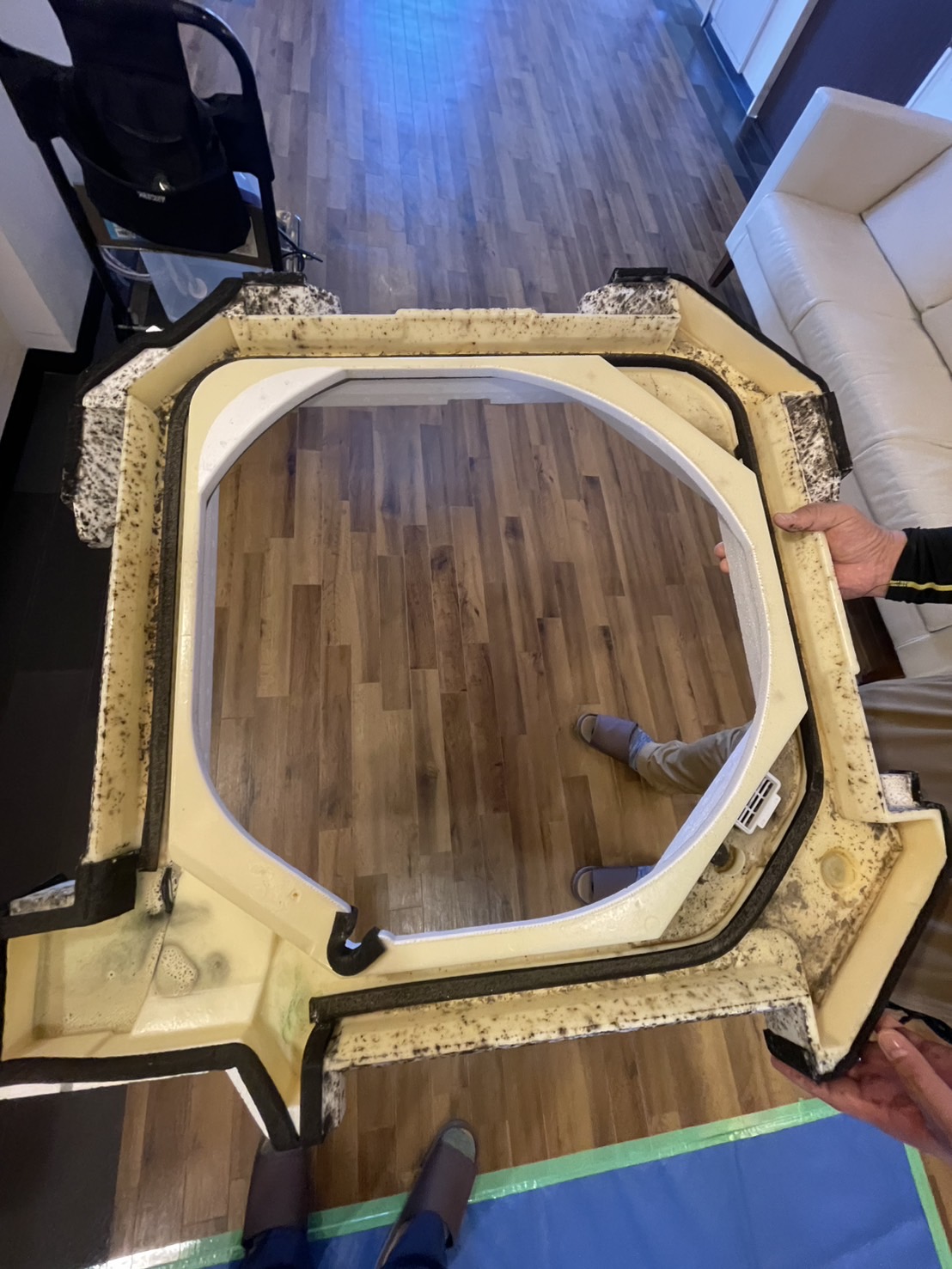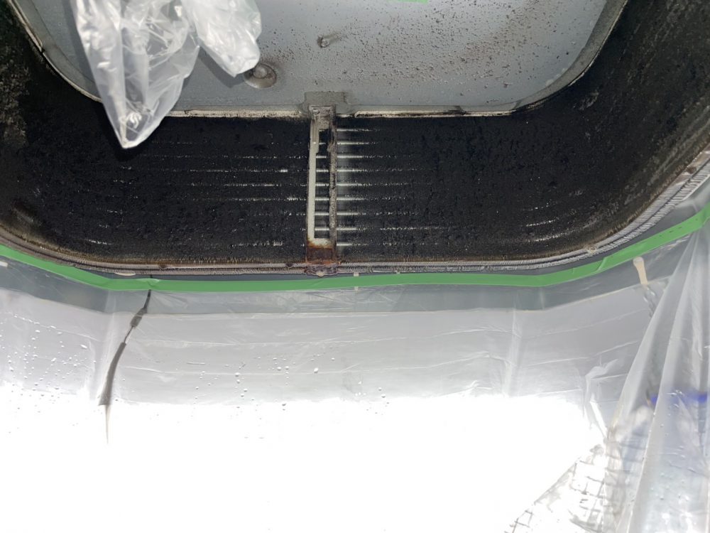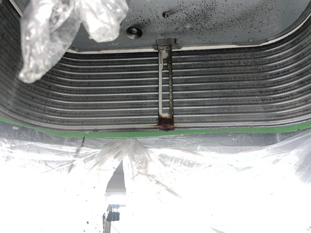 ドレンパン、ファン、モーターを外して完全分解完了。