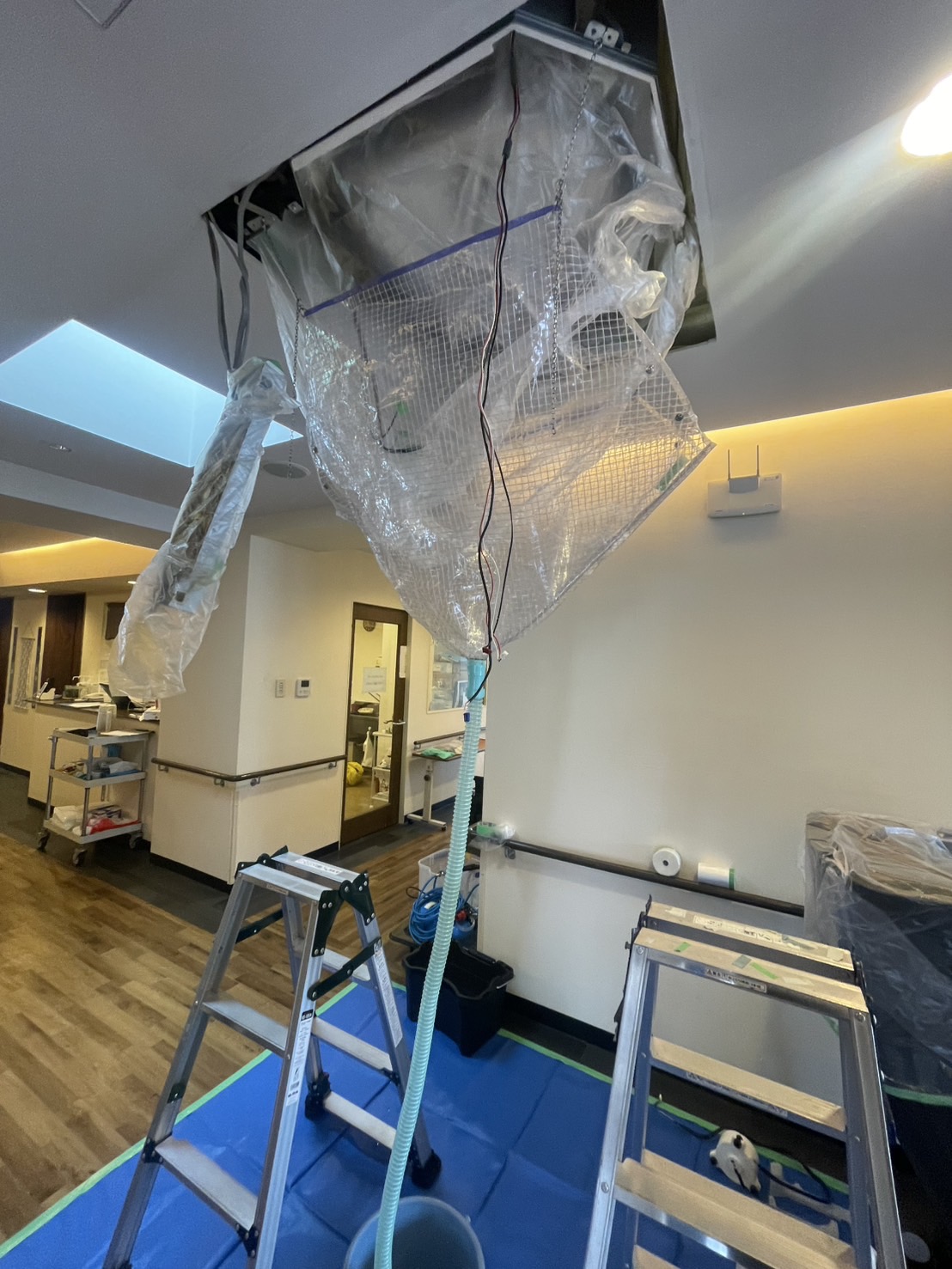 エアコン本体、床、家具、周辺機器等を徹底的に養生します。