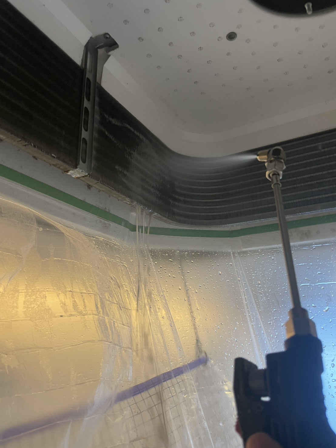 高圧洗浄中の養生内部です。しっかり洗浄していきます。
