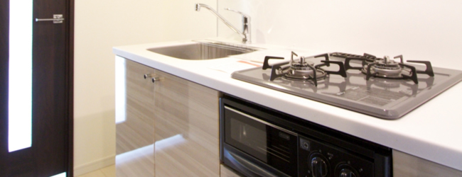 シンク周り、ガスコンロ、キッチン壁面、レンジフード外側(内部は対象外です)、